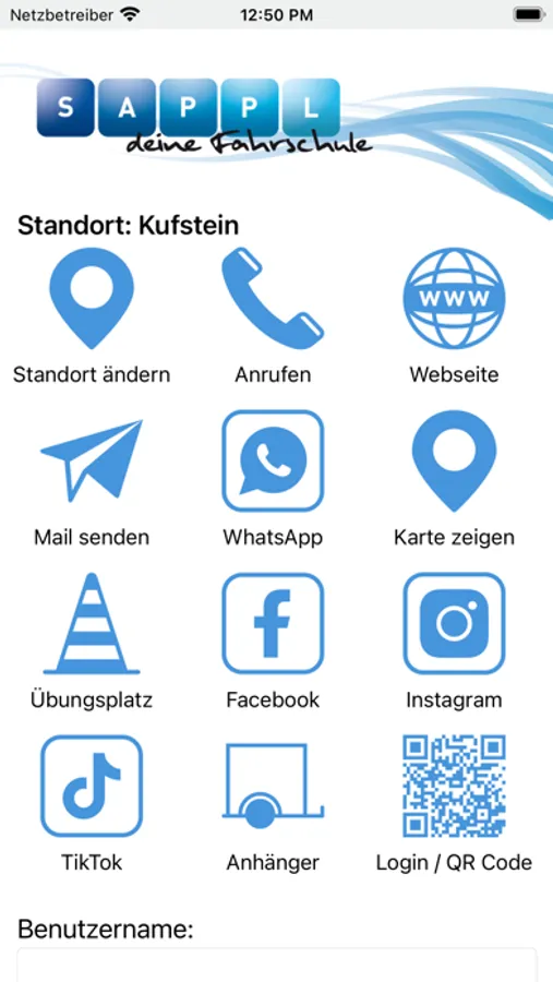 Nutze die Fahrschule Sappl App um mit der Fahrschule Sappl Kufstein, St. Johann, Hall, Wattens und Wörgl in Kontakt zu bleiben, deine Führerscheinausbildung online zu organisieren, einen One-Click-Zugang zum Online Trainer zu erhalten sowie viele weitere Funktionen um schnell an deinen Führerschein zu kommen.