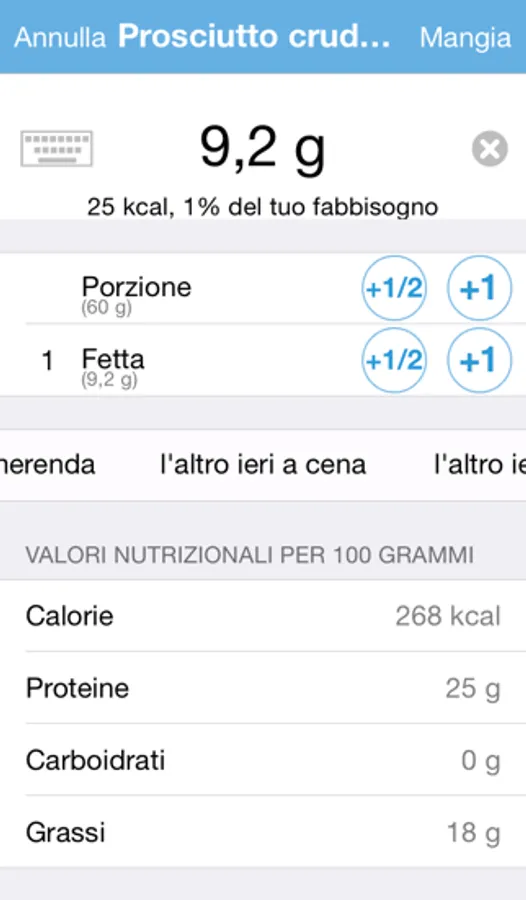 • registra gli alimenti assunti a ogni pasto