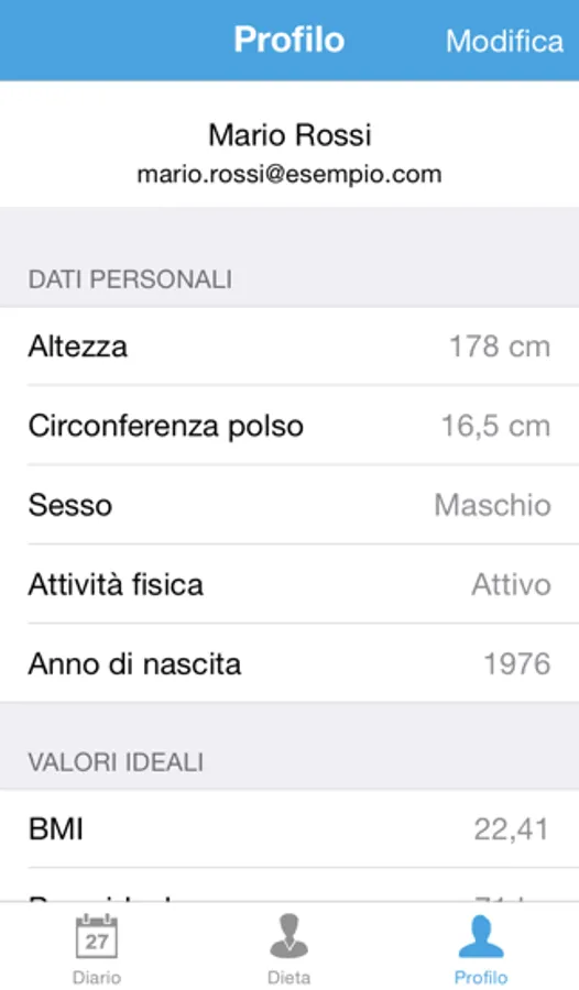 • visualizza i tuoi progressi durante il percorso dietologico