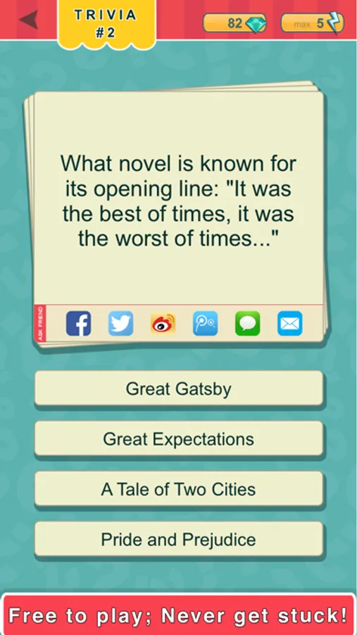 - Stuck on a question? You can always pass it for free! No in-app purchase necessary!