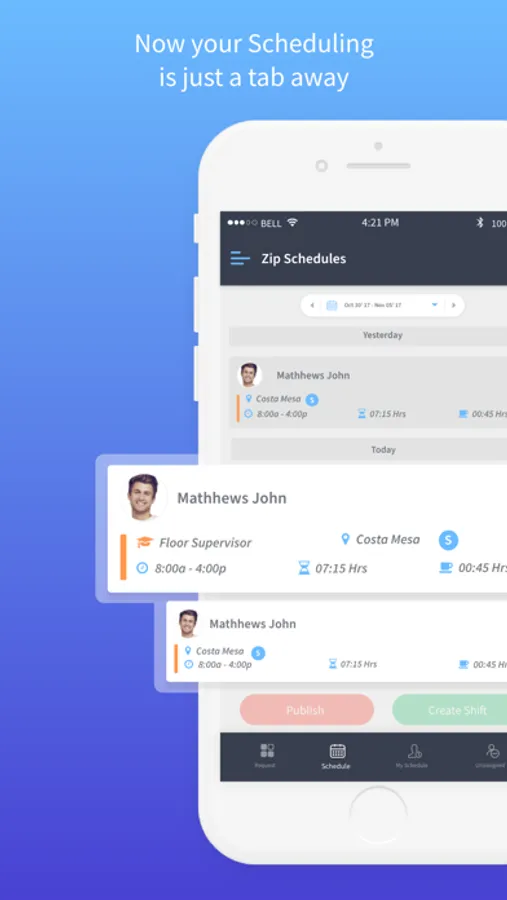 Zip Schedules puts the work schedule in your pocket. Now communicating, receiving notification whenever a new schedule is published or an existing schedule is updated, requesting time-offs, swapping shifts, editing availability are just a click away.