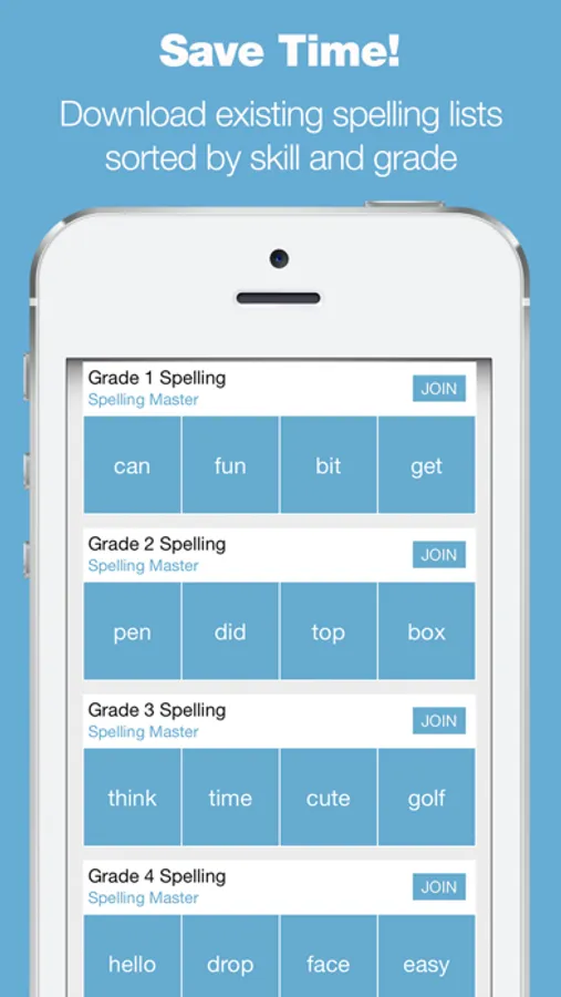 • The App comes pre-loaded with 1,000 Spelling Tests - that’s 10,000+ practice words organized by grade and skill level.