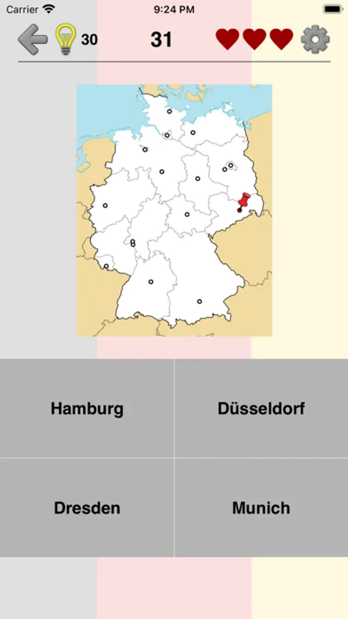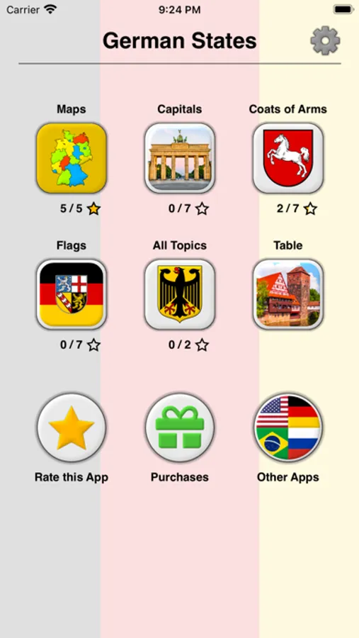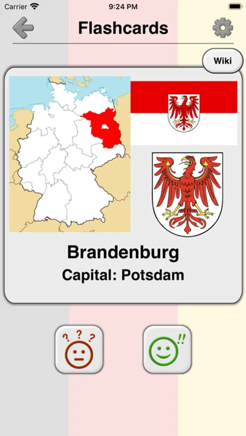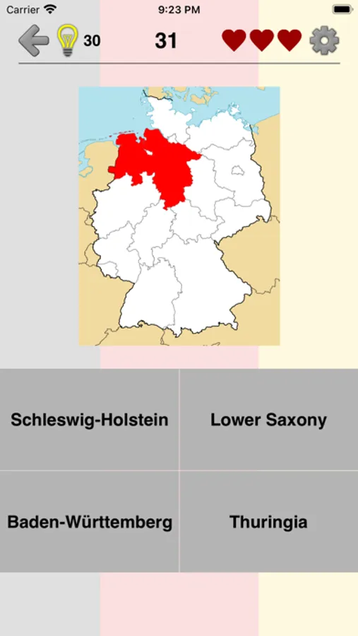 The app is translated into 9 languages, including English, German, French and many others. So you can learn the names of the German states in any of them.