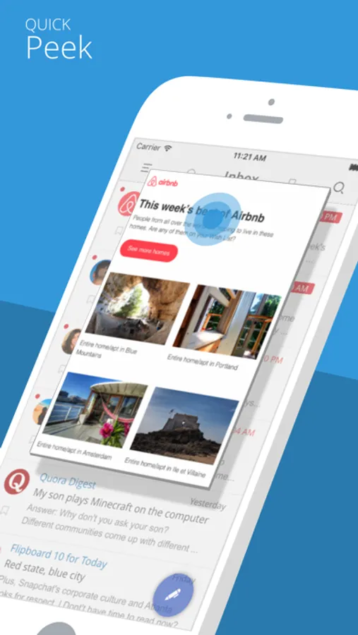 - Swipe action to delete, mark as read, mark as spam, reply, etc
