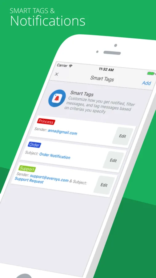 Customize notifications, filter, and tag messages based on sender, recipients, subject, or its content.