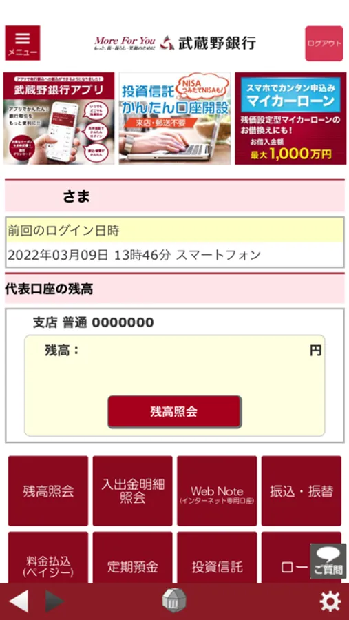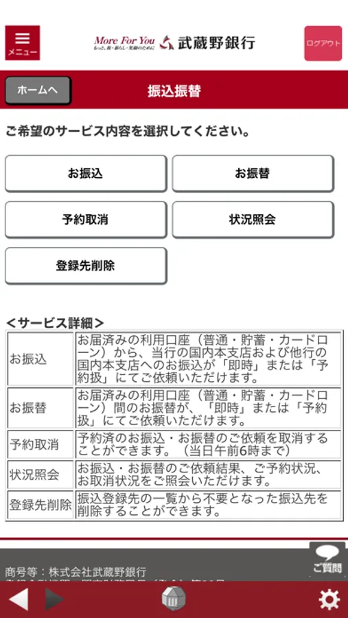 ※ご利用にあたっては、武蔵野銀行ホームページ掲載の「スマートフォンアプリのご利用に関するご注意事項」をご確認ください。