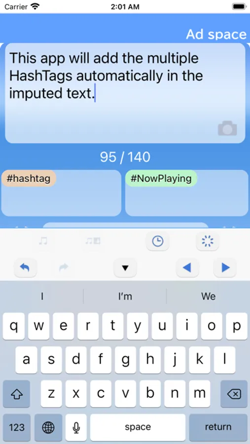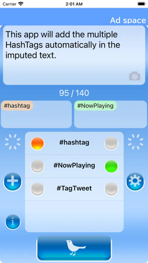 This app will add the multiple Hashtags automatically in the inputted text when you posting to the twitter.