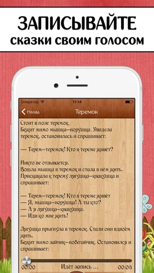 - Записывайте сказки своим голосом, просто читая текст с экрана