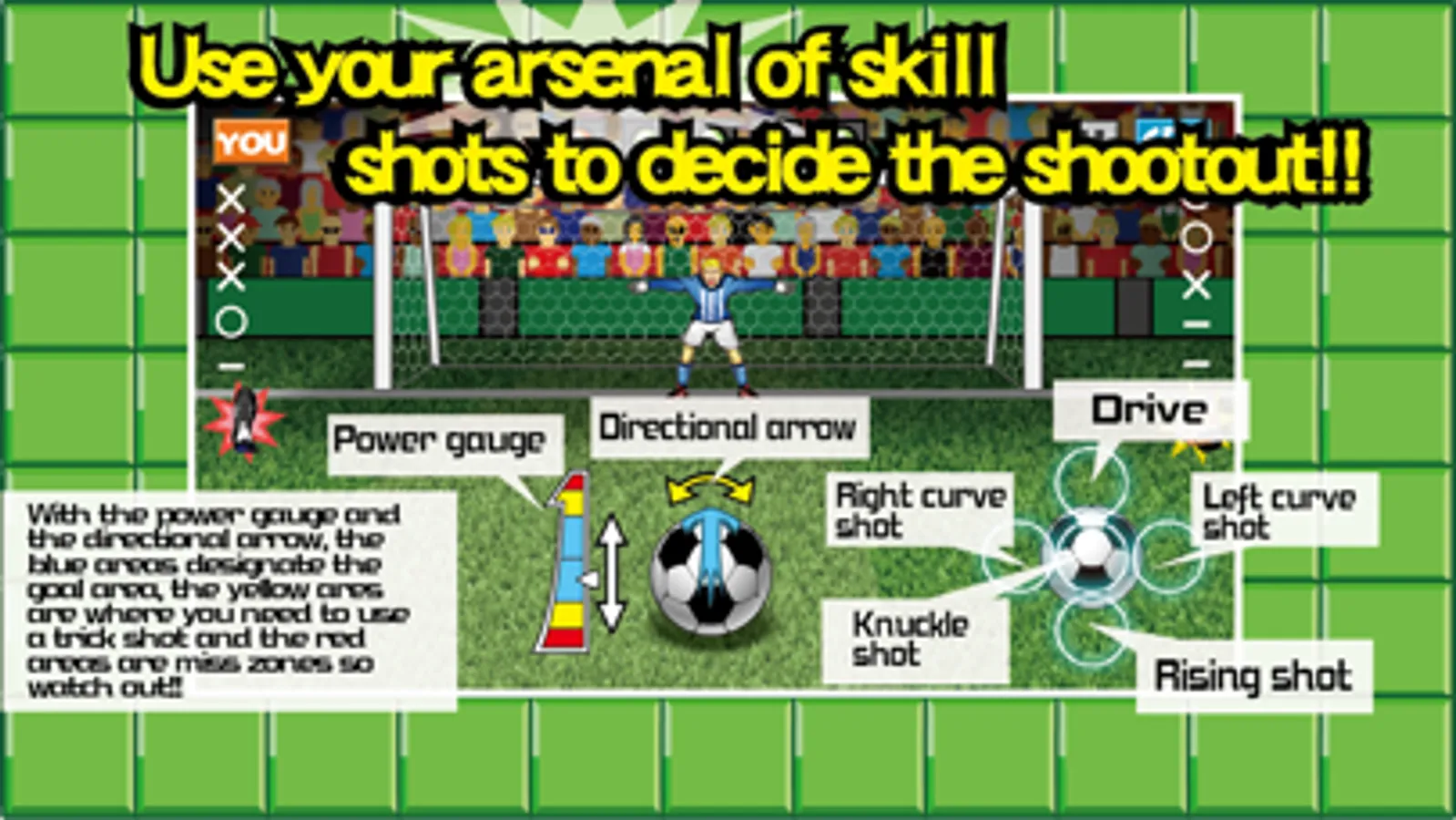 Use your arsenal of skill shots to decide the shootout! Reflex penalty kick battle "WORLD SOCCER PK"