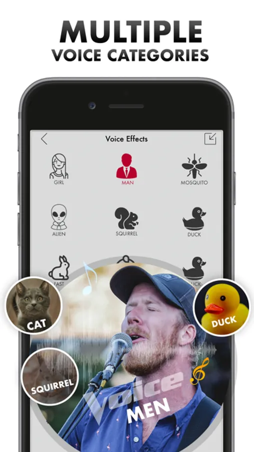 Hear your voice with respect to different ages, voices and effects.