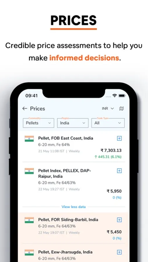 SteelMint app is a everyday tool for people in the business of steel and related commodities. This app is packed with extremely useful features for your daily steel business needs as well as long term insights into the iron and steel market. After a series of iterations and in-house test runs, the interface has been adapted to be user-friendly and informative. Keeping that in mind, we have added features that will help you receive information quickly and accurately.