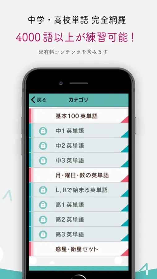 ・英語単語・熟語等合わせて4000フレーズ以上を搭載しています。(※課金コンテンツを含みます)