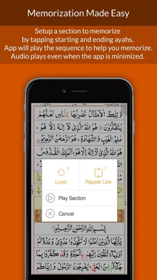 - Memorize sections - Hifz friendly mode to repeat lines or section multiple times