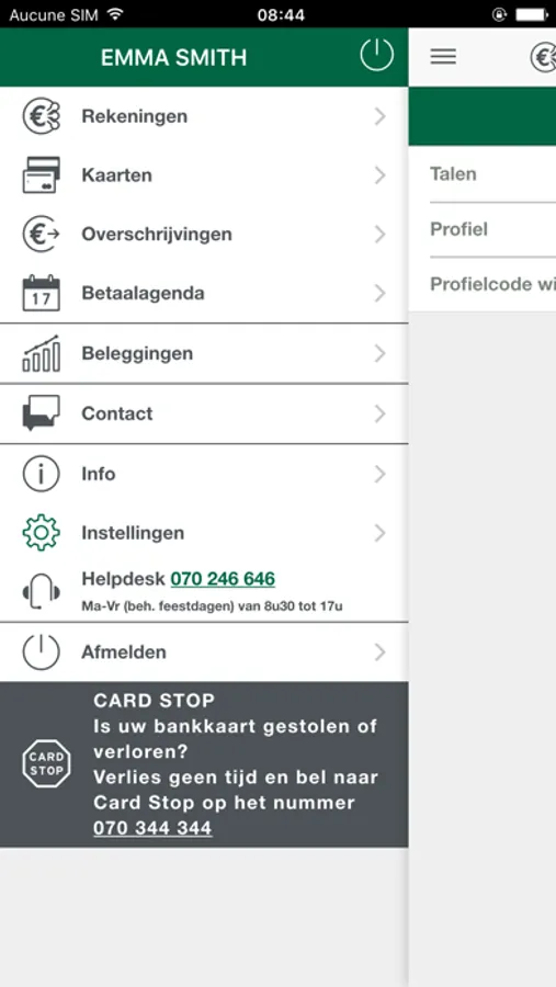 - de parameters (limieten, contactloos betalen, gebruik in het buitenland, e-commerce …) van uw debet- en kredietkaart wijzigen;