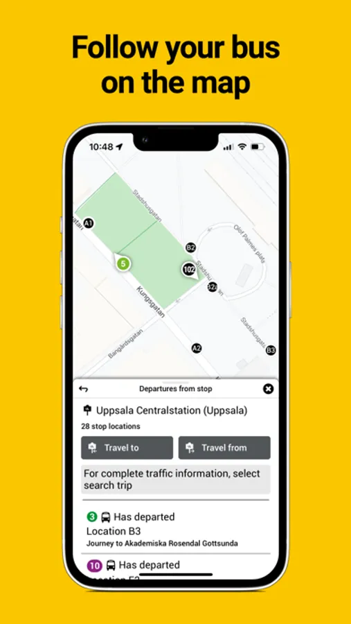 • Quickly search for your trip from your current position or by choosing where and when you want to travel.