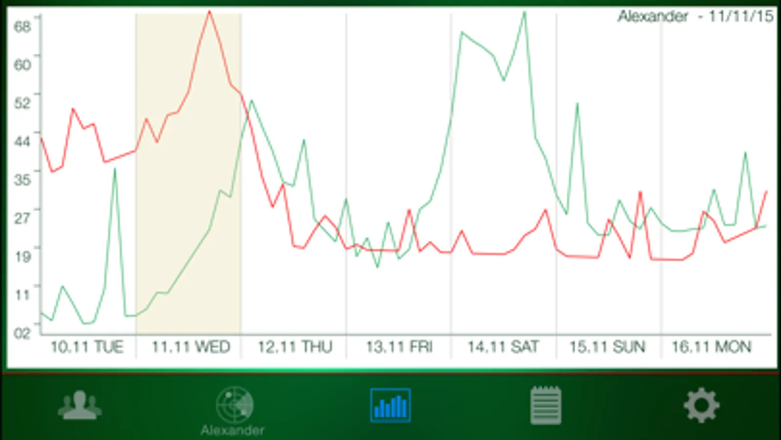 - swipe forward / backward to rebuild weekly graphic forecast in the future or in the past;