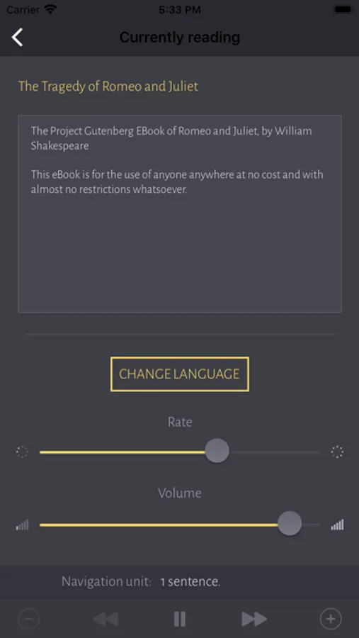 With Talking Book Reader, your plain text (.txt) documents become audio books. Simply copy files into the application via iTunes File Sharing or from another application, select the book you want to read and enjoy reading!