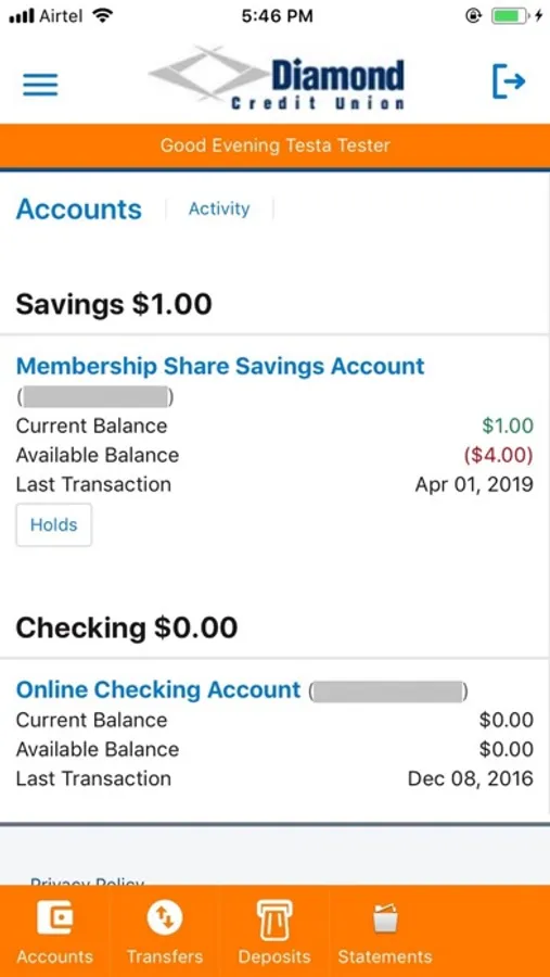 With Diamond Credit Union's updated mobile app, you can view account balances, transaction history, transfer funds, pay bills, find branches, and deposit checks remotely.