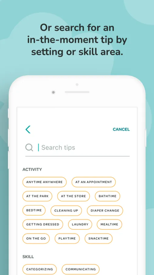 - Explore tips on the go and find ones that are just right for your child. Search tips by setting, Brain Building Basics and other skill areas.