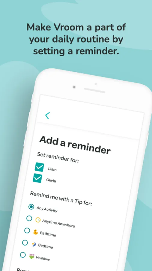 - Every day, we feature a Vroom Tip for your child’s age range, ready when you open the app.