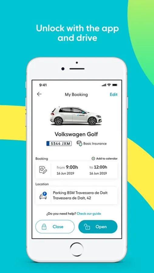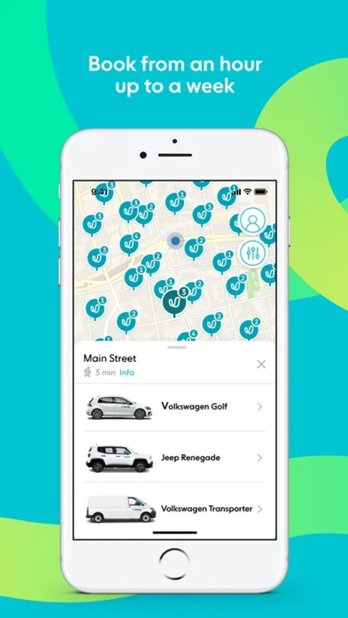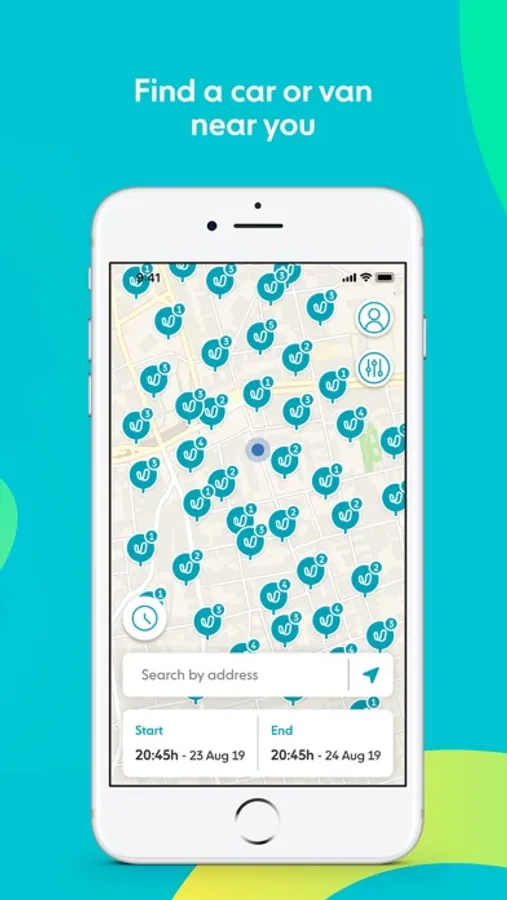 It’s easy. You book and borrow your car or van using the car sharing app, with no need to go to a rental office, and choose any rental duration, from hours to days.