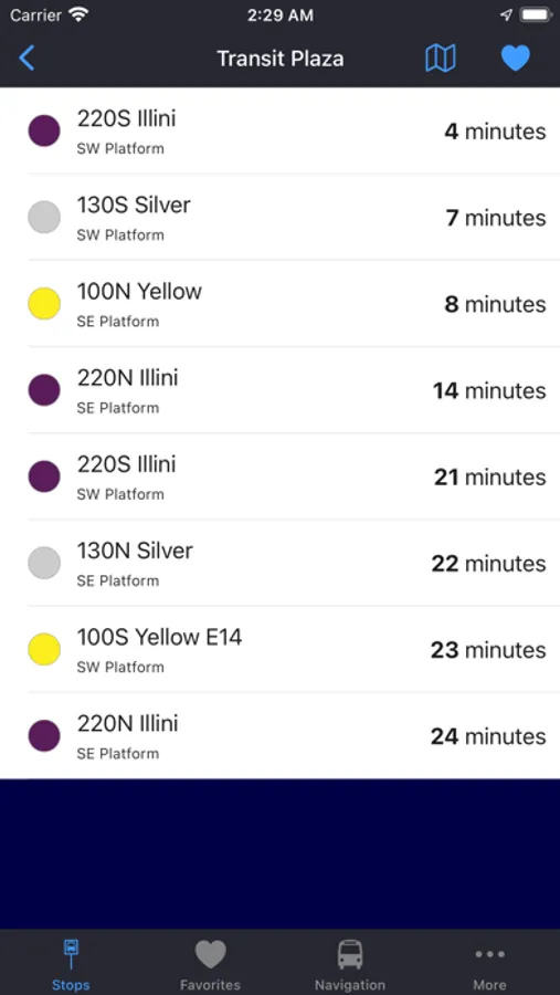 - Navigation (choose your desired departure or arrival time and the stops you are traveling to and from)