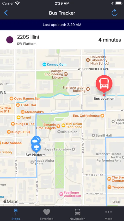 My Bus Helper: MTD provides stop and bus route information for the CUMTD bus service that operates in Champaign and Urbana.