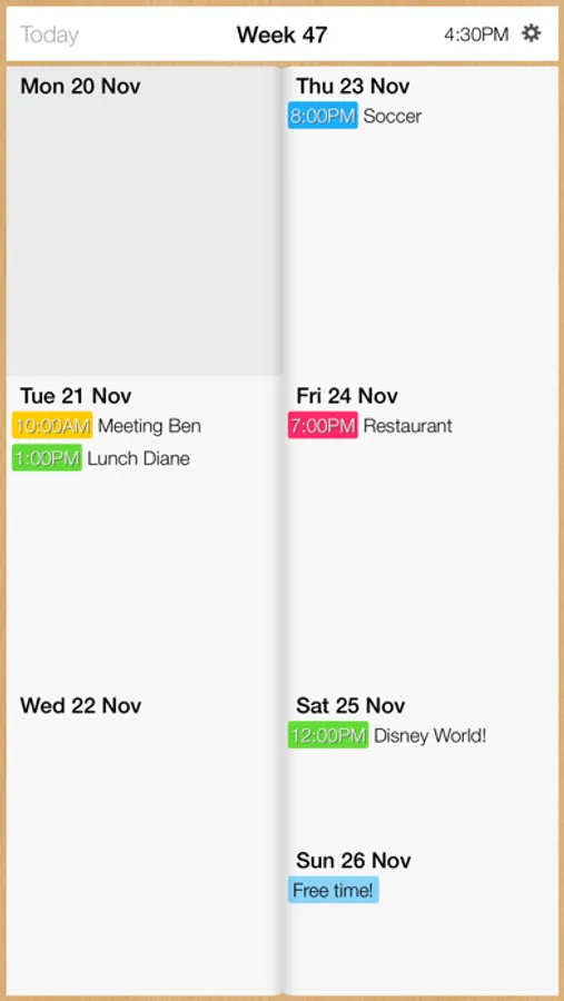All you need to enter is the name and time of your event. Other default settings are easily set in the app. That’s what makes Week Calendar much faster than your default calendar.