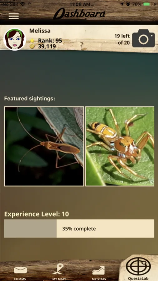 - QuestaLab allows you to earn gold and gain expertise levels identifying other players' sightings.