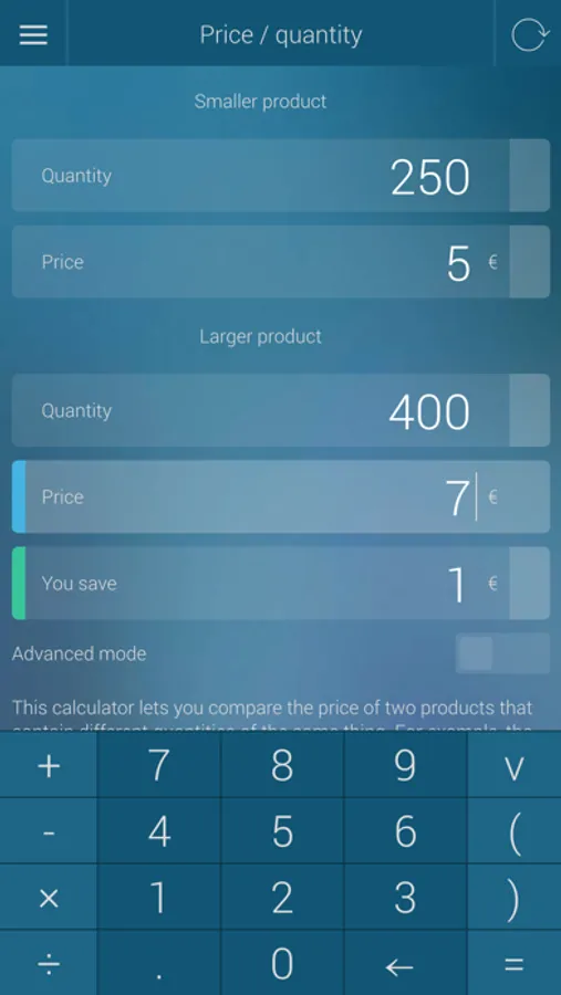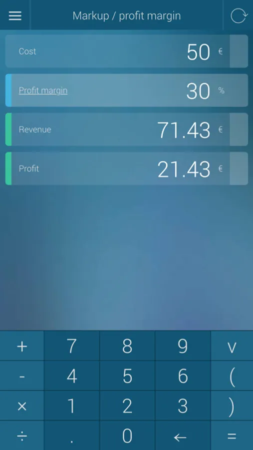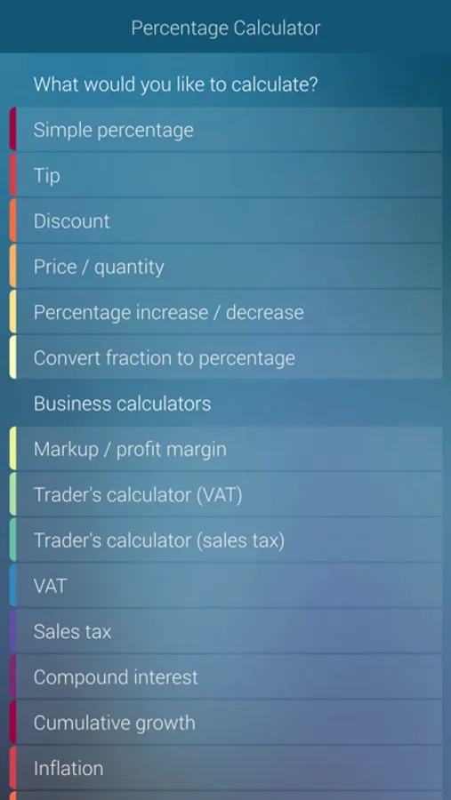 Percentage Calculator's strongest feature is that any value can either be a source or result of a calculation - just enter the values you know and it will tell you the remaining ones!