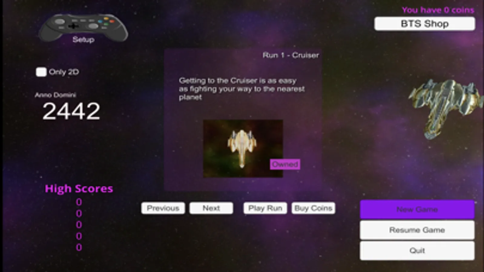 AD 2442 is a retro 2D / 3D space shooter. You can, if you prefer, play the game in 2D only mode. Game play is fun and easy. Avoid and destroy the hazards while collecting the crystals, gems and other pickups. As with all classic space shooters there are lasers, explosions, boss levels and plenty of things to shoot.