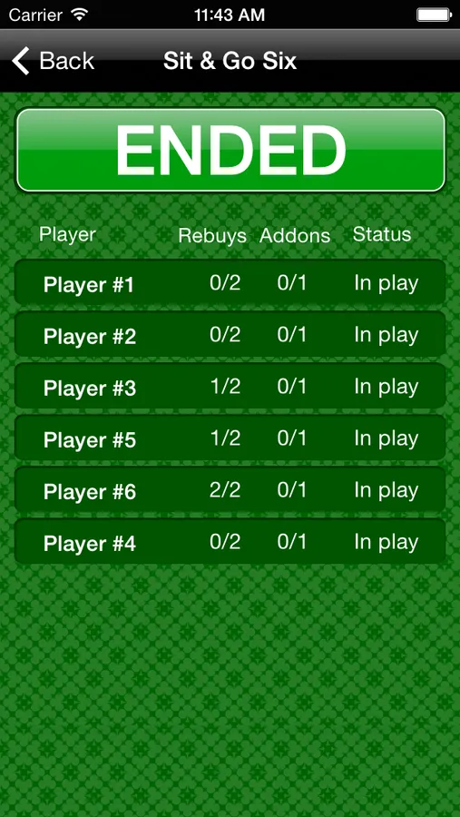 2. There is statistics of rebuys and addons for each player;