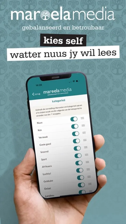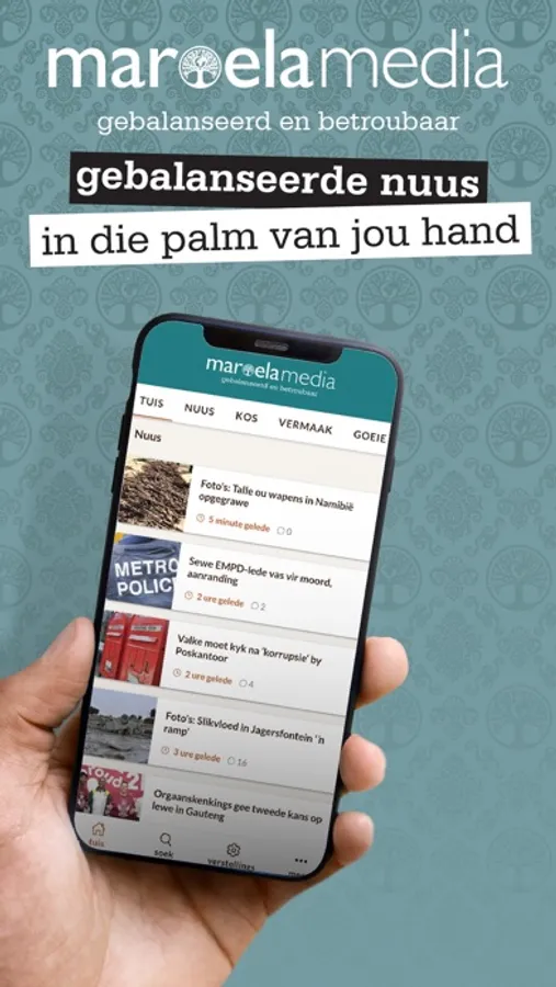 Al jou nuus - gratis en in Afrikaans! Maroela Media hou jou op hoogte van die jongste nuusgebeure en ons maak seker dat jy weet watter boeke om te lees, hoe om vanaand se kos gaar te maak en wie die rugby gaan wen. In ons Vermaak en Leefstyl-afdeling kan jy selfs uitsien na daai stories wat jou na jou asem gaan laat snak, jou tot trane gaan dryf of jou laat skaterlag van lekkerkry en plesier. Ons meningvormers gesels kopstukke in Die Groot Debat en ons gee vir jou agtergrond oor gebeure in Nuuskommentaar.