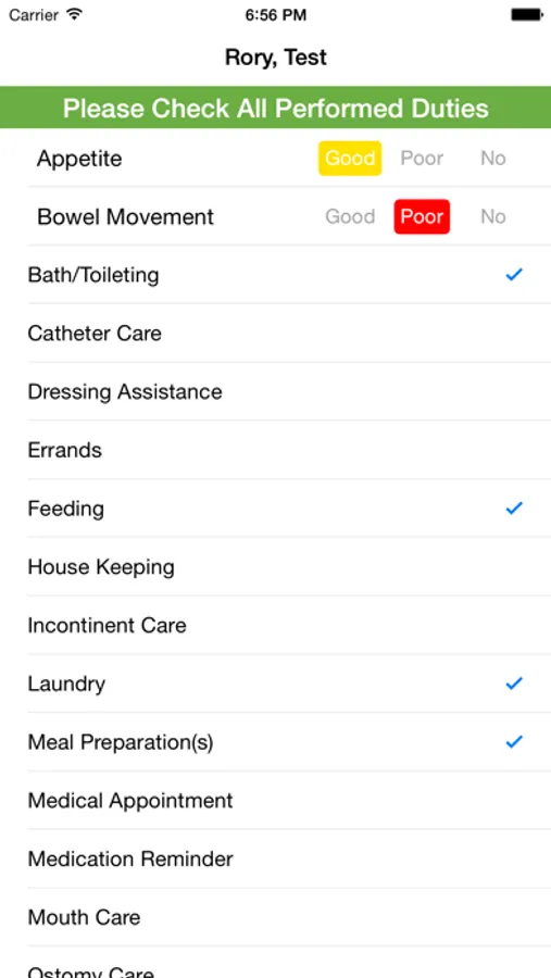 2) The ability to enter tasks, duties, and treatments performed on the job