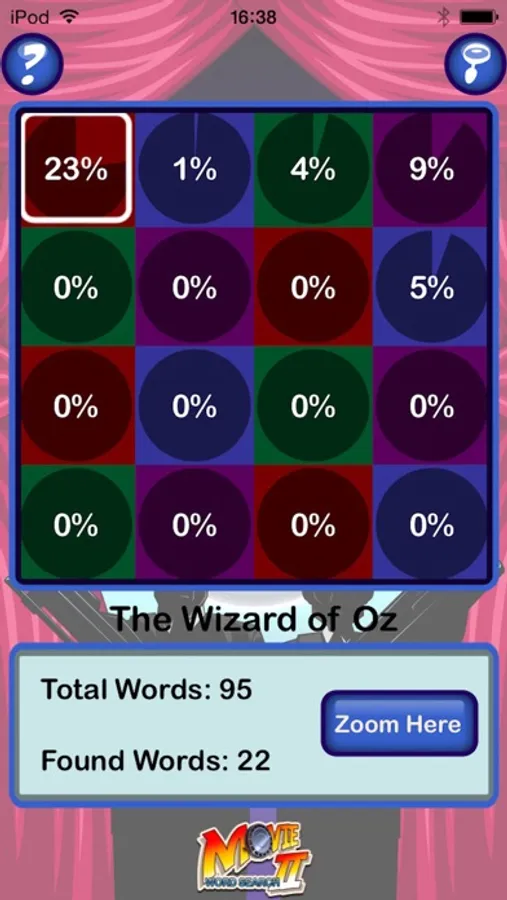 Use two fingers to scroll around the massive grid, then drag with one finger to highlight a word. Zoom out at any time to see a summary of your progress.