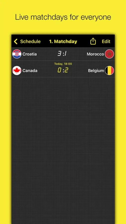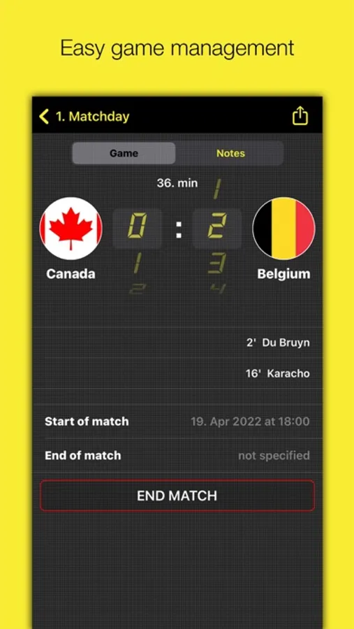 In soccer tournaments you can now add events like yellow and red cards, corners and offsides. Followers can be updated by the minute with notifications if you change the match venue or post any other important news.