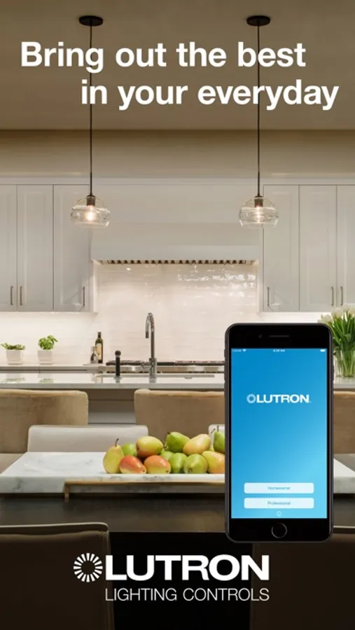 The Lutron app requires a Lutron system and compatible Lutron smart lighting products. To learn more or hire a professional installer visit www.lutron.com.
