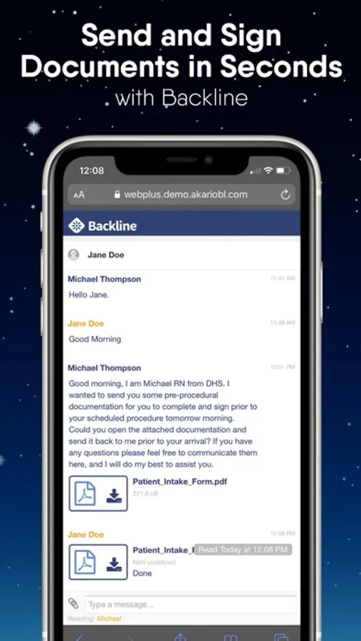 With secure texting, file sharing, and integration with eForms platform built-in, Backline gives you everything you need to collaborate with patients now while giving you the tools to improve clinical communication between your staff, patients, family members, and external providers in the future.