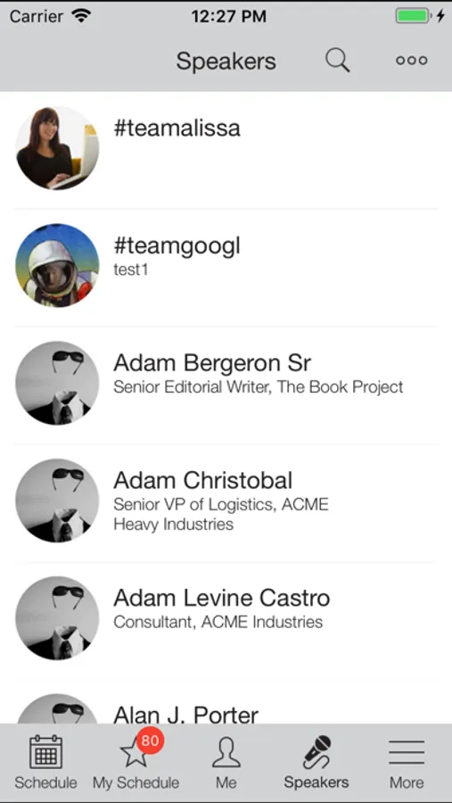 - Speakers and participants. Browse and search speakers, including names, pictures, titles and bios.