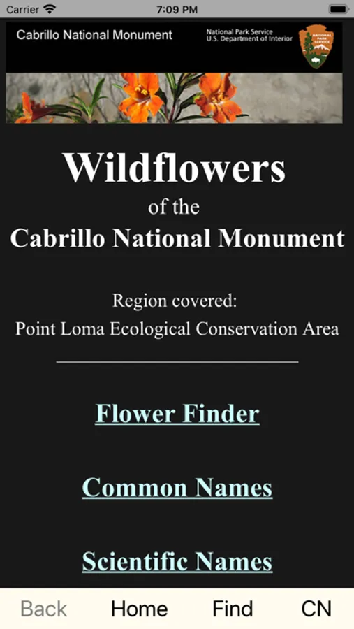 The National Park Service invites you to take along a virtual botanist the next time you visit the Cabrillo Nation Monument. With almost 350 plants and 2500 photos, this App offers both novice and advanced wildflower enthusiasts the opportunity to identify common and rare plants while exploring the Park.