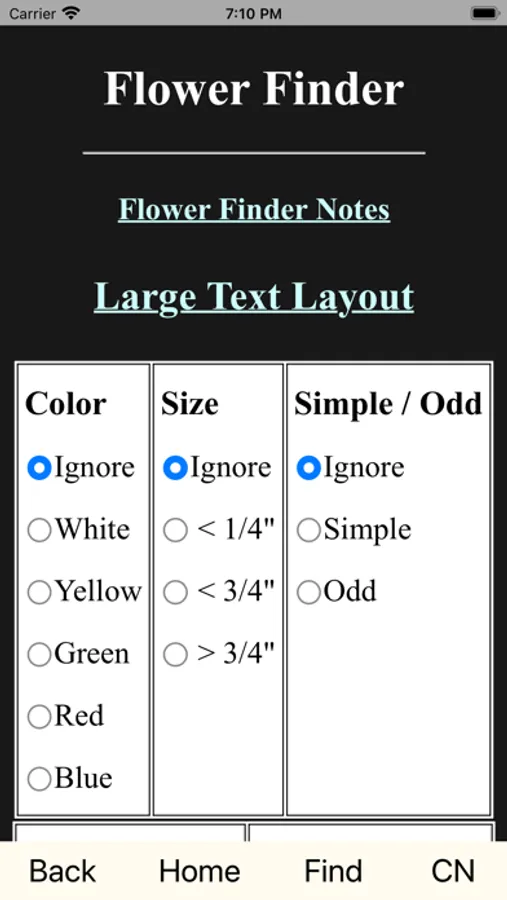 Visitors can choose several basic flower characteristics on the App’s interface like color, size and shape. Based on those characteristics, the App presents several possible photographs to compare to the actual flower. Flowers that are more difficult to identify often come with several photographs so that visitors can confidently make an accurate identification.