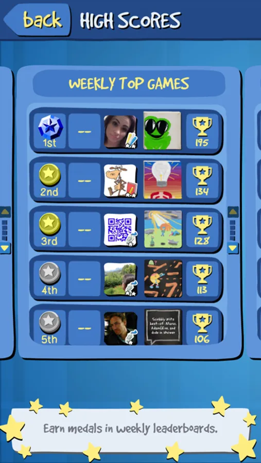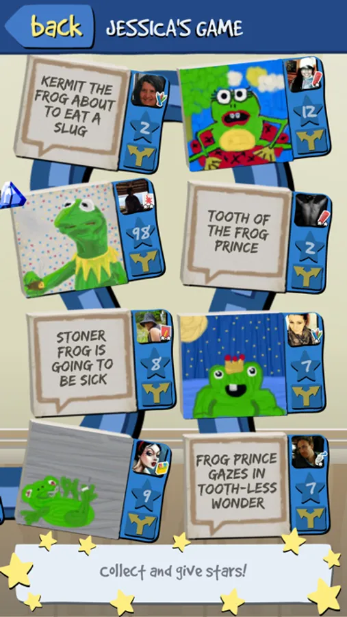 Scribbly Wits is a drawing game where you create chains of drawings and phrases that become hilarious works of comedy genius, like the game Telephone, but with pictures. Meet new friends and give stars to the funniest players. Not an artist? Use your wit and scribbles to win!