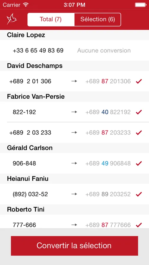 Une fois l'installation de "Vini Convers" terminée, il vous suffit de lancer l'application et de suivre les instructions. L'application se charge alors de détecter automatiquement les numéros de Polynésie française de votre répertoire qui doivent être modifiés et vous affiche en temps réel le préfixe qui sera ajouté pour chaque numéro. Vous avez alors le choix d'ignorer certains numéros et il ne vous reste plus qu'a appuyer sur le bouton démarrer, votre répertoire est maintenant converti !