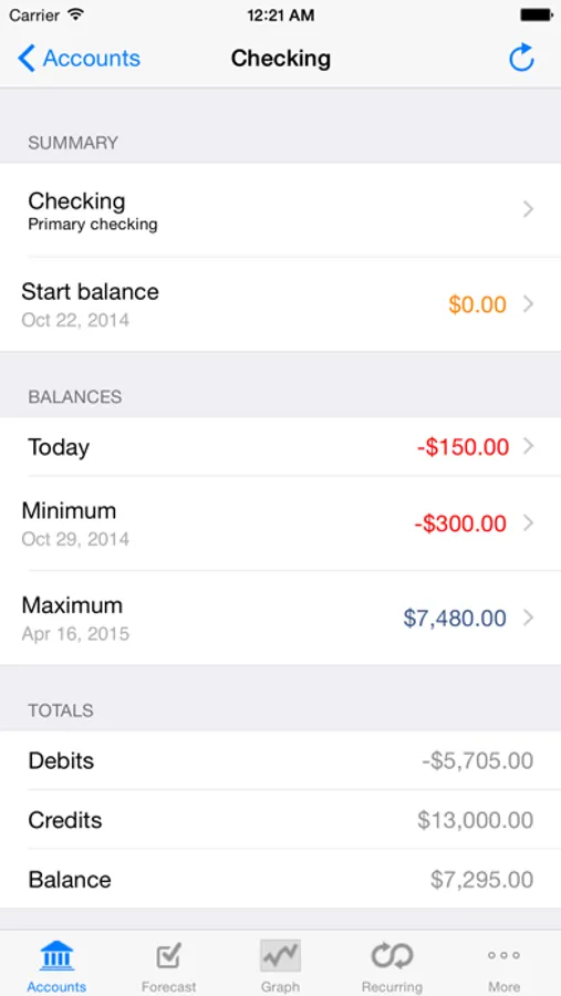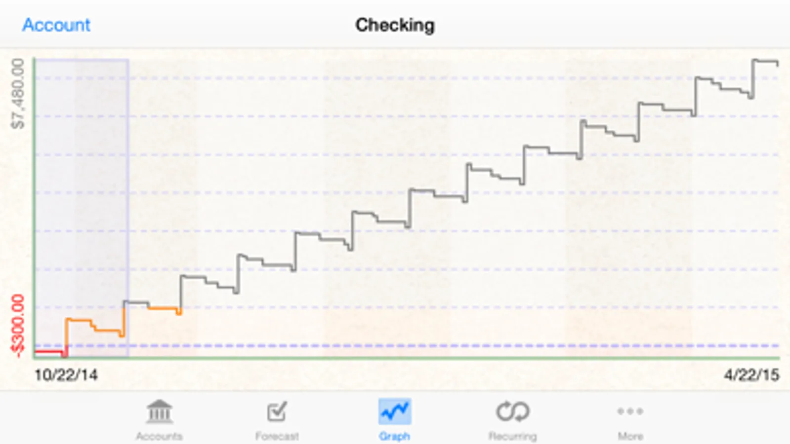 - Interactive forecast graph: Shows your future balance over time, highlighting warning balance and negative regions; tap the graph for a closer look at the nearby transactions.