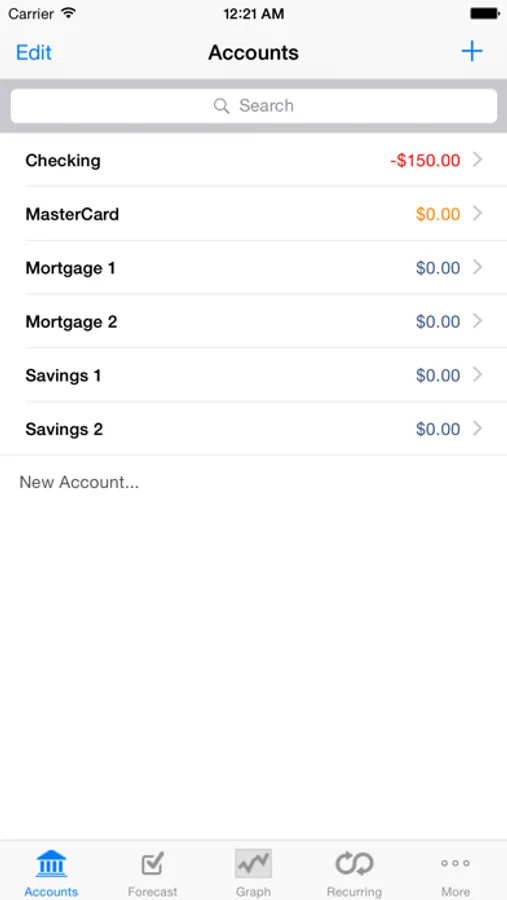 - Warning balance: Set a warning balance for an account and see at a glance when your balance is below it.