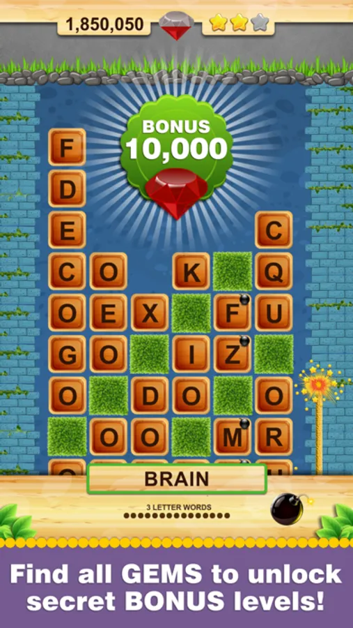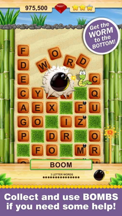 If you find Worm to be stuck and you can't come up with any words, you can use a bomb to clear some of the tiles. You have a limited number of bombs, but you can earn more as you make more words. As Worm moves down the board, more letters become available.