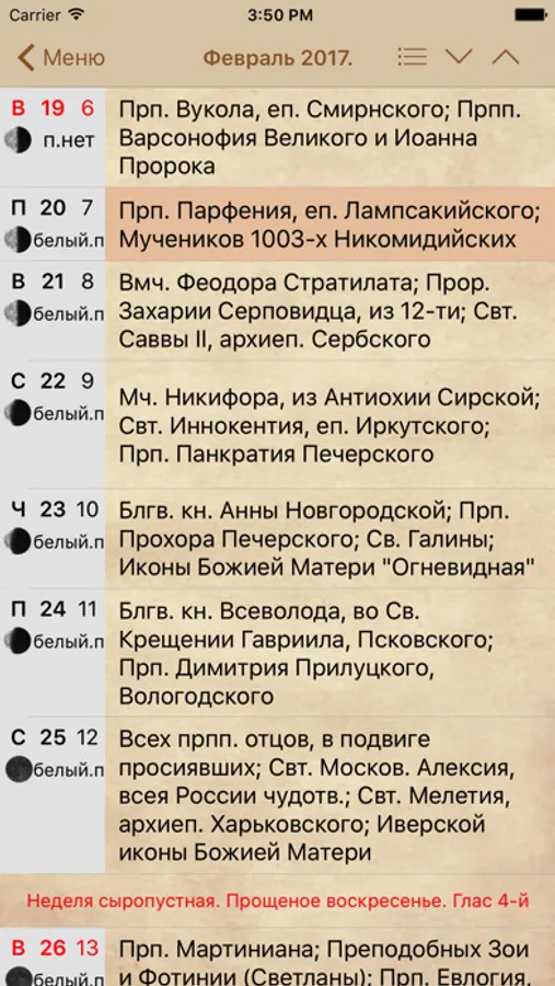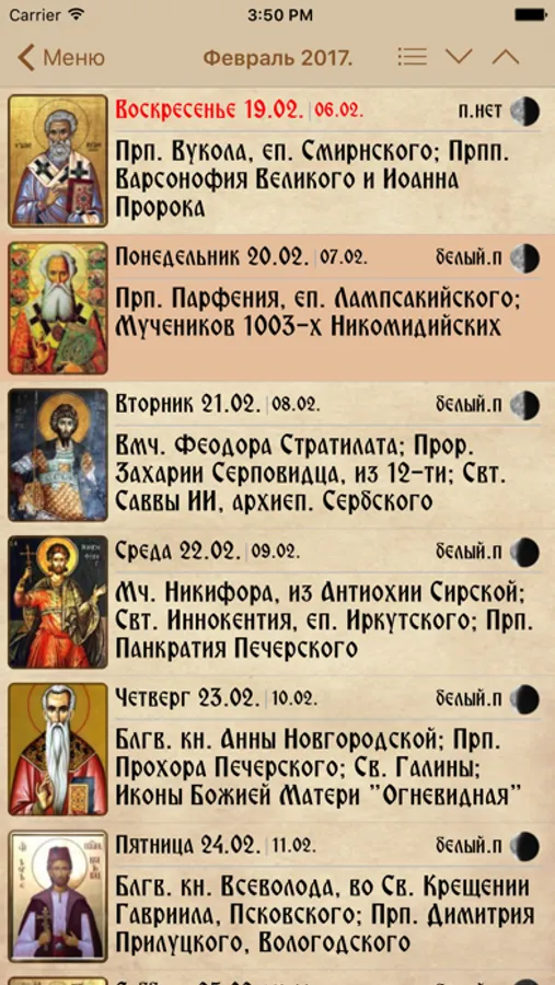 - The church calendar, for the period between 2012. and 2030., with daily date review according to Gregorian and Julian calendar, the moon phases and fast types. The church calendar automatically adjusts moveable holidays and fasts for every year according to Easter as well as the moon phases.
