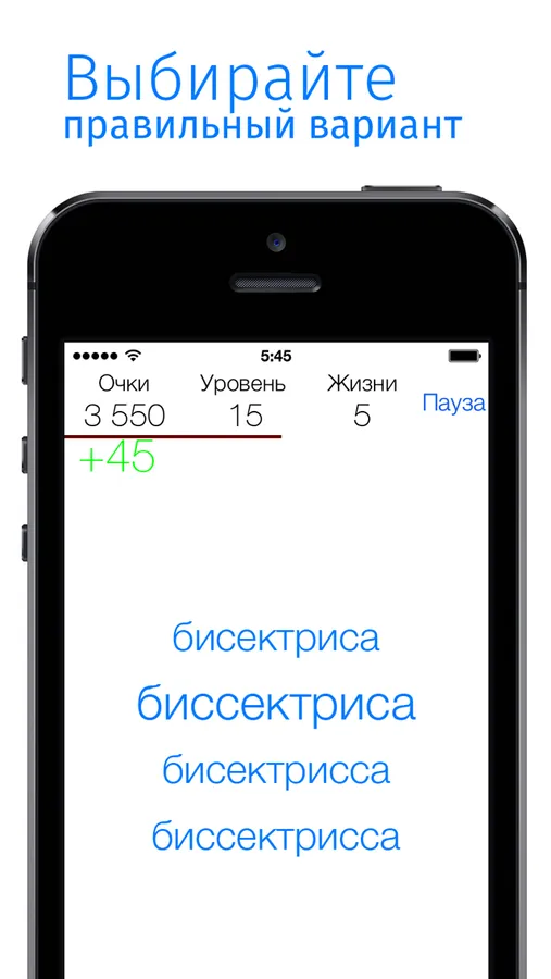 В игре свыше 2 500 словарных слов. Смысл игры очень прост: выбирайте из предложенных вариантов написания слова единственно верный, зарабатывайте очки, следите за временем и не ошибайтесь, чтобы не тратить жизни.