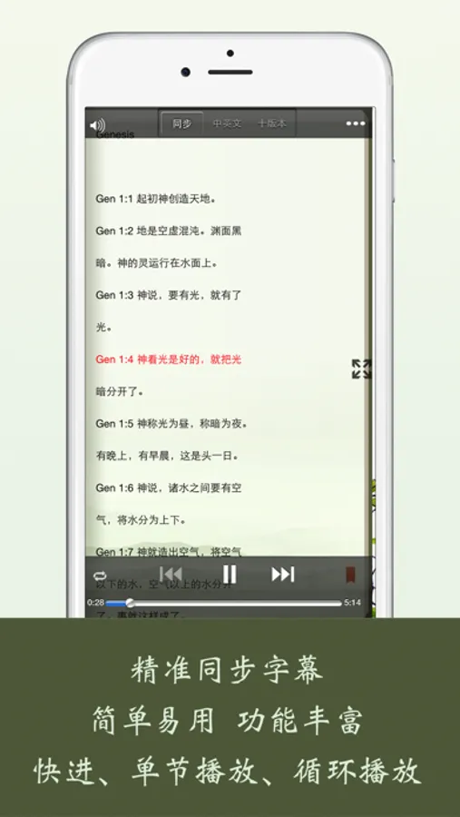 1 精準同步字幕、簡單易用,功能豐富:快進、單節播放、循環播放