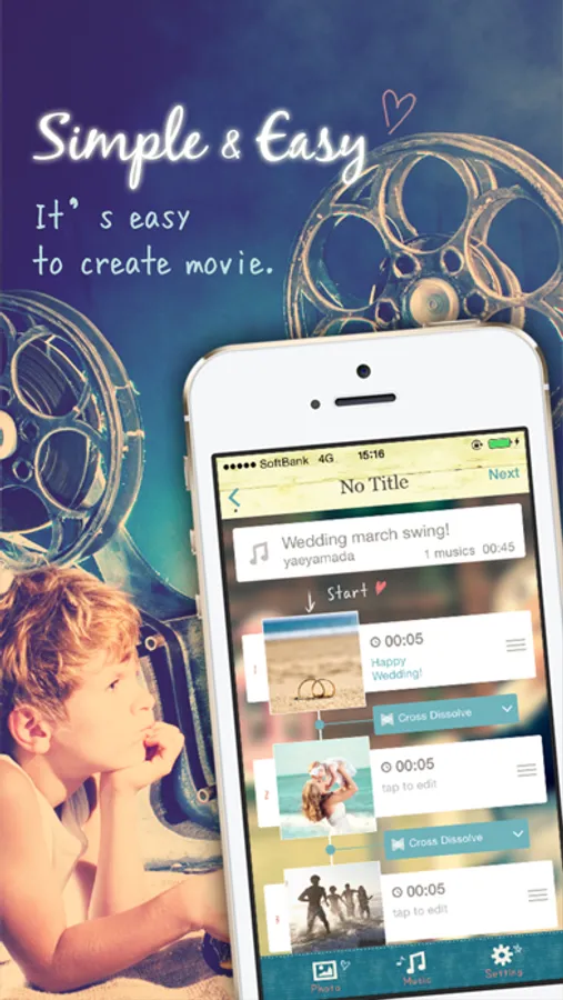 This app is very easy to use. Just select multiple photos from your camera roll, verify the results using the preview functionality, and then output the final video. With these easy steps you can create your very own original movies.